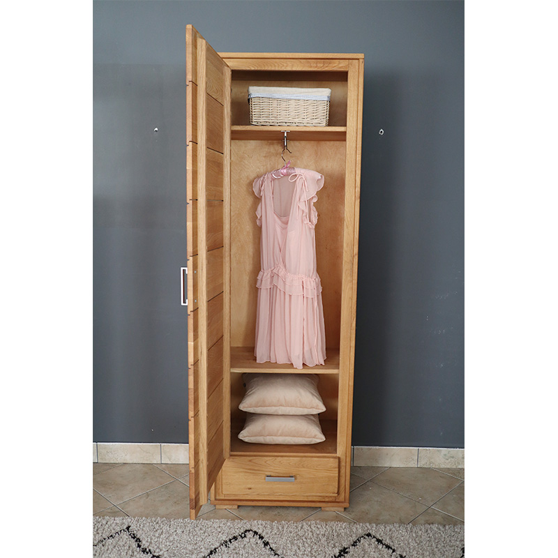 W CZĘŚCI Z DRZWICZKAMI WYSUWANY WIESZAK ORAZ 2 PÓŁKI, NA DOLE 2 SZUFLADY