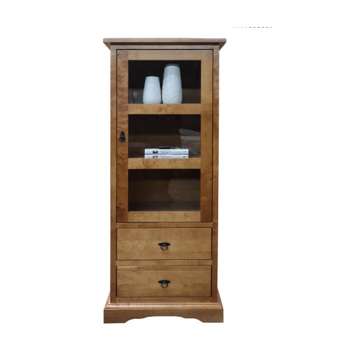 W CZĘŚĆI Z PRZESZKLONYMI DRZWICZKAMI DWIE PÓŁKI, NA DOLE DWIE SZUFLADY.